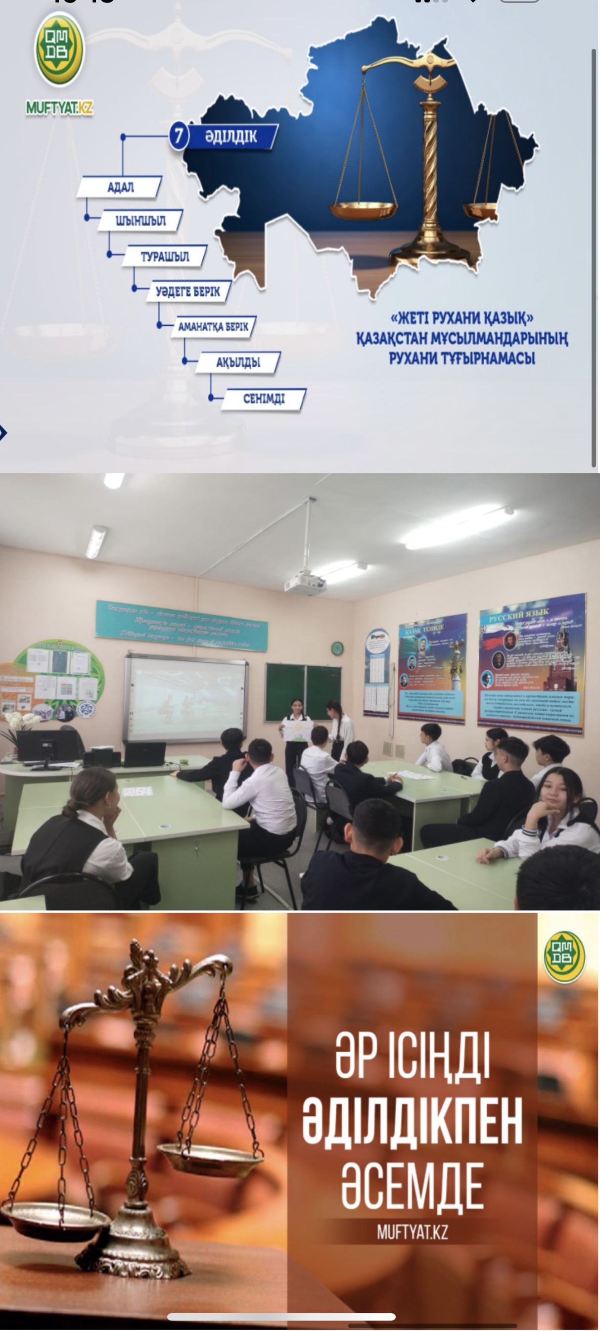 9"Б" сыныбында "Әділдік пен жауапкершілік басты ұстаным" тақырыбында сынып сағаты өтті.